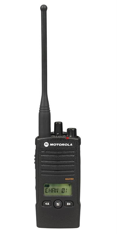 The Motorola RDU4160D 4-Watt 2-way radio operates on an innovative 89 business-exclusive UHF frequencies and is 2013 FCC Narrowband ready. The default factory programming on this RDX radio is set to operate in 12.5kHz mode. An easy-to-read Display and five programmable buttons enable quick access to features. Enhanced audio quality, a rugged design and versatile customer programming software, make this radio an exceptional choice for all your on-site business needs.